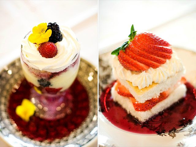 (Left) English Trifle with custard, berries & sponge cake(Right) Strawberry Shortcake